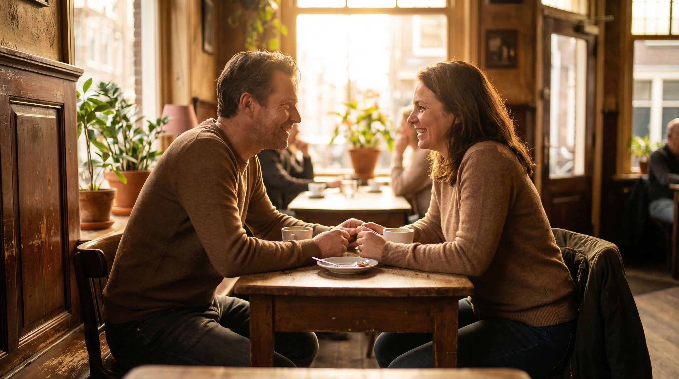Einfach zwei Menschen. Ein Tisch (oder eine Bank, oder ein Park). Und der Raum, um wirklich zusammen zu sein.