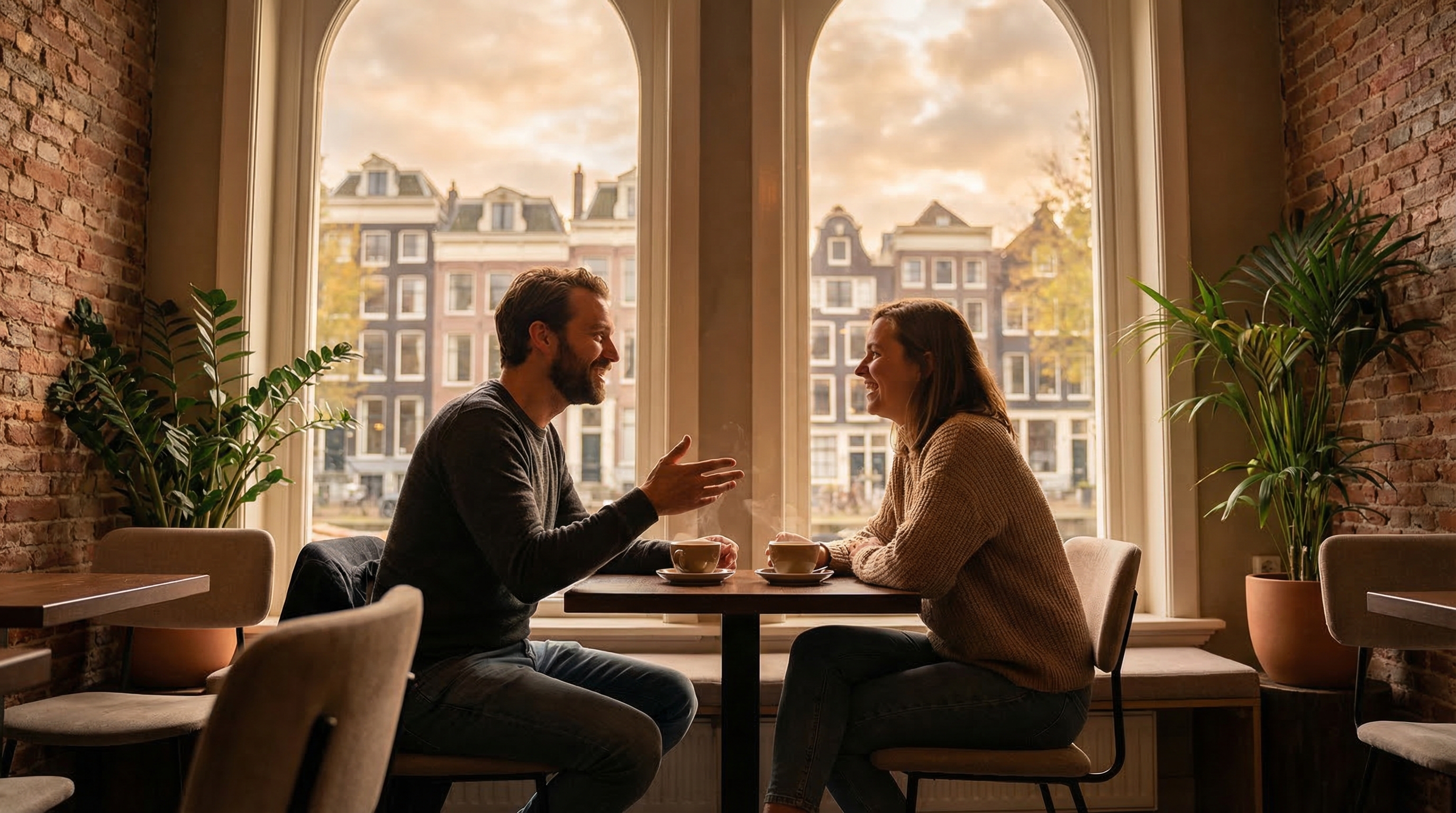 Coffee dates have become the Dutch standard for first meetings. Practical, low-pressure, and you can leave quickly if there's no chemistry. Etiquette tips: